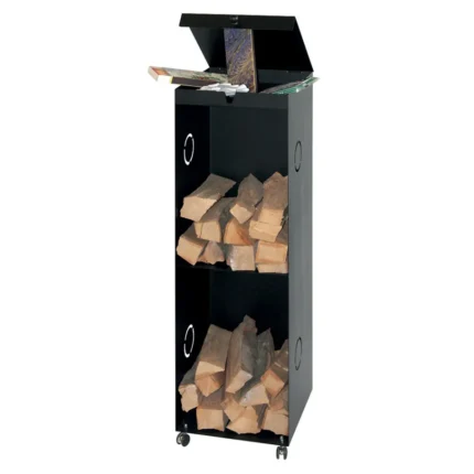 Este suporte para lenha de design contemporâneo é uma solução elegante e prática para aqueles que buscam melhorar o ambiente de sua casa. Feito de aço, ele oferece não apenas um espaço de armazenamento resistente para lenha, mas também um toque decorativo distinto para sua casa.
